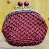 This charming coin purse features a delicate crochet pattern and a silver clasp adorned with beads. Perfect for carrying small essentials in style. Ideal for adding a touch of elegance to any outfit.